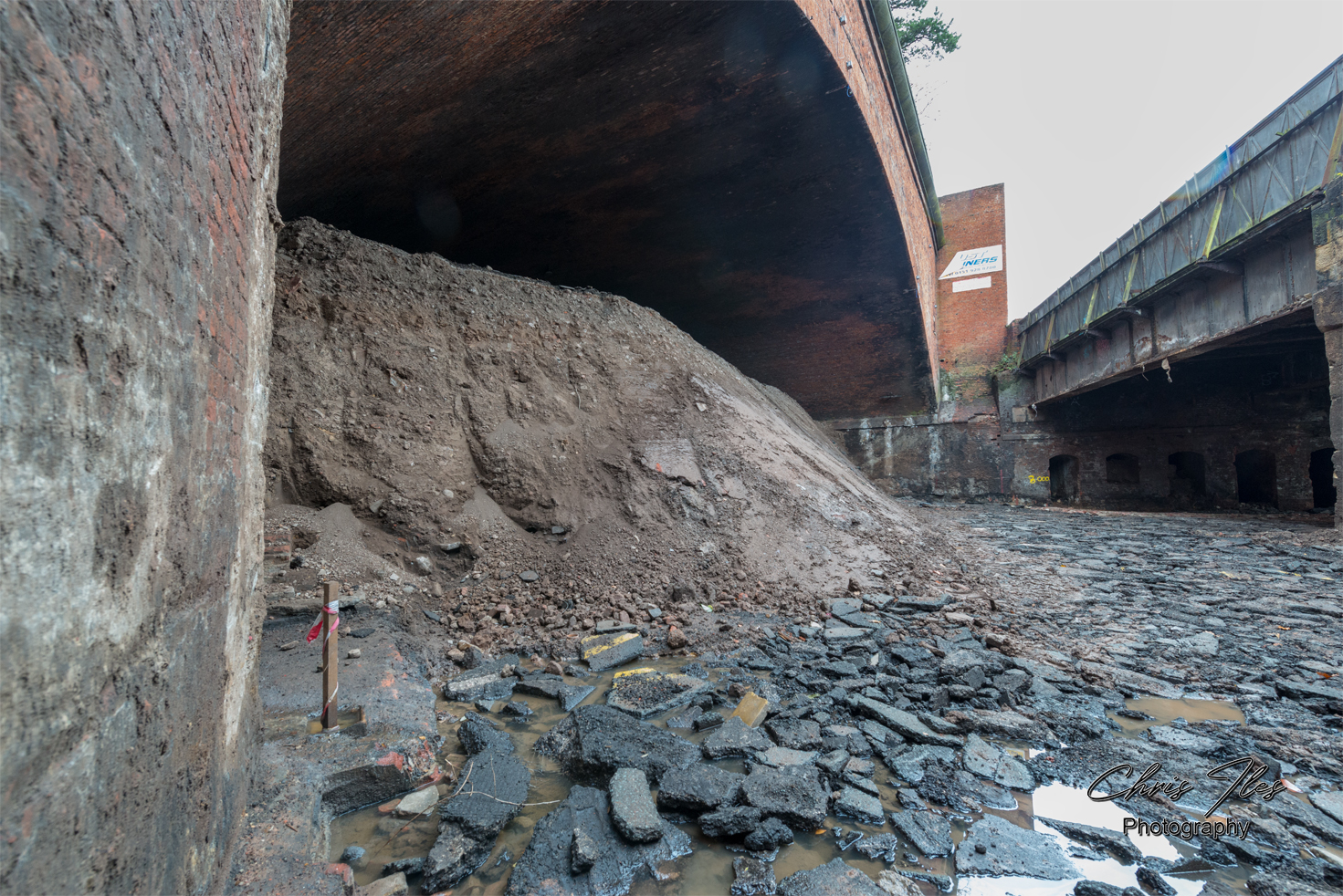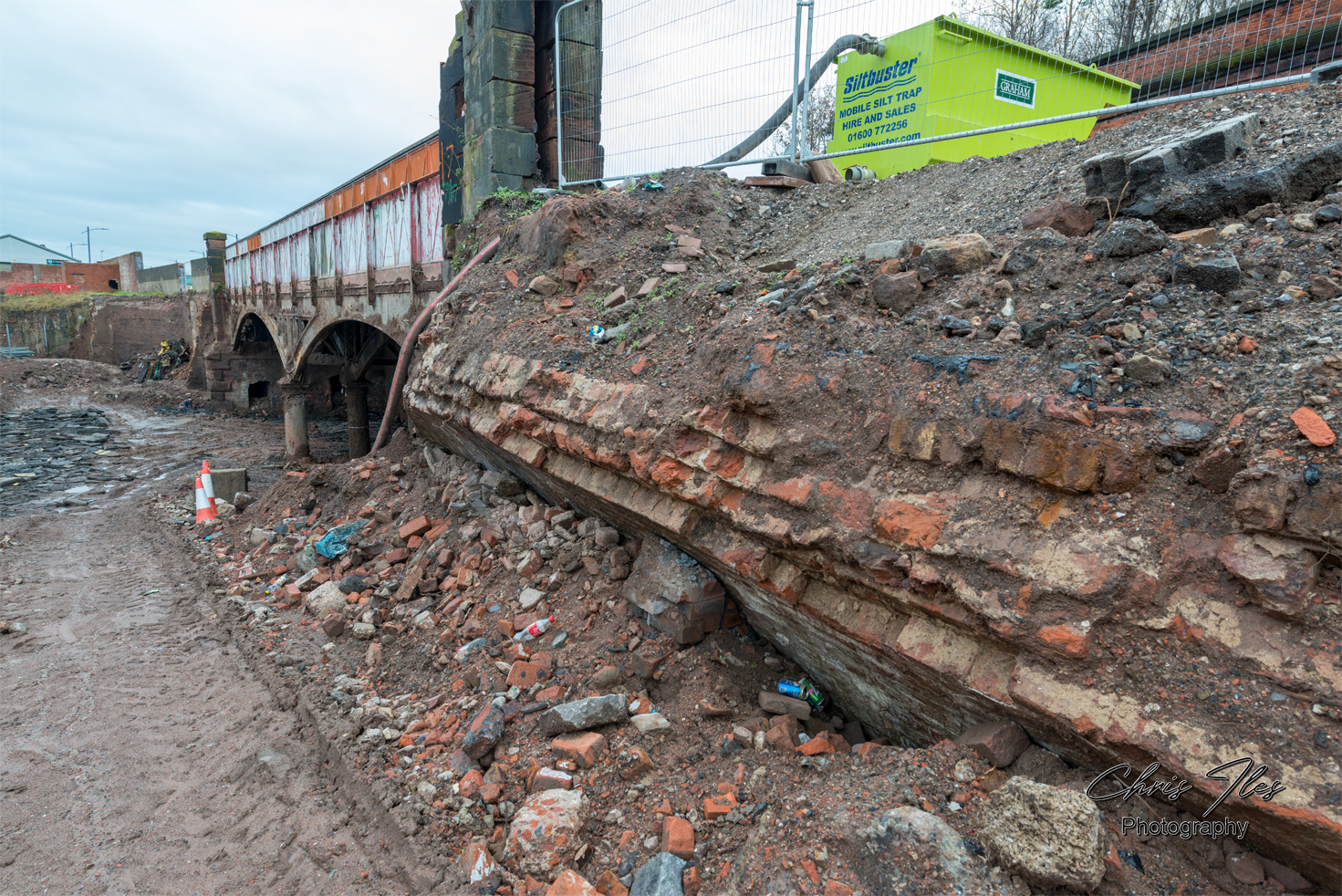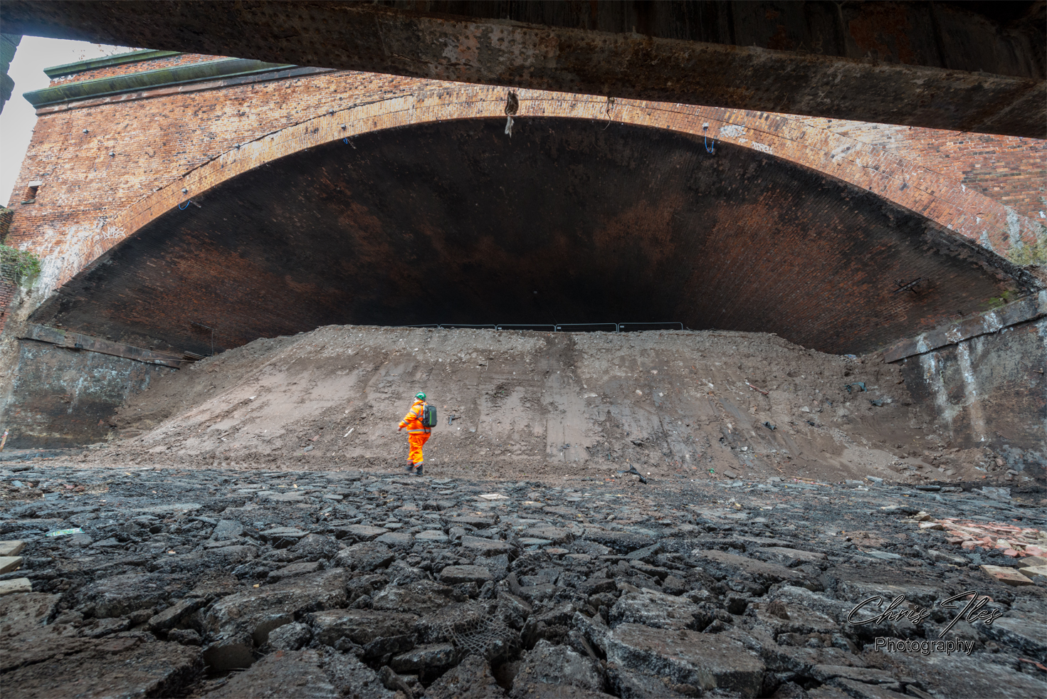 I was given site access to photograph the original metal structure of the Great Howard Street road Bridge (A565), given that the bridge’s structure had been revealed, after being buried for safety reasons for many years. However, this work to reveal the structure of the bridge was sadly in preparation for it’s demolition. The original bridge was constructed by Robert Daglish and Co of St Helens, having a total span of 166ft and being formed of 4 ribs, supported centrally by cast iron columns. The iron bridge was later widened with a steel girder bridge section, which allowed the road to be widened. The original bridge has now sadly been demolished and replaced by a new concrete bridge.