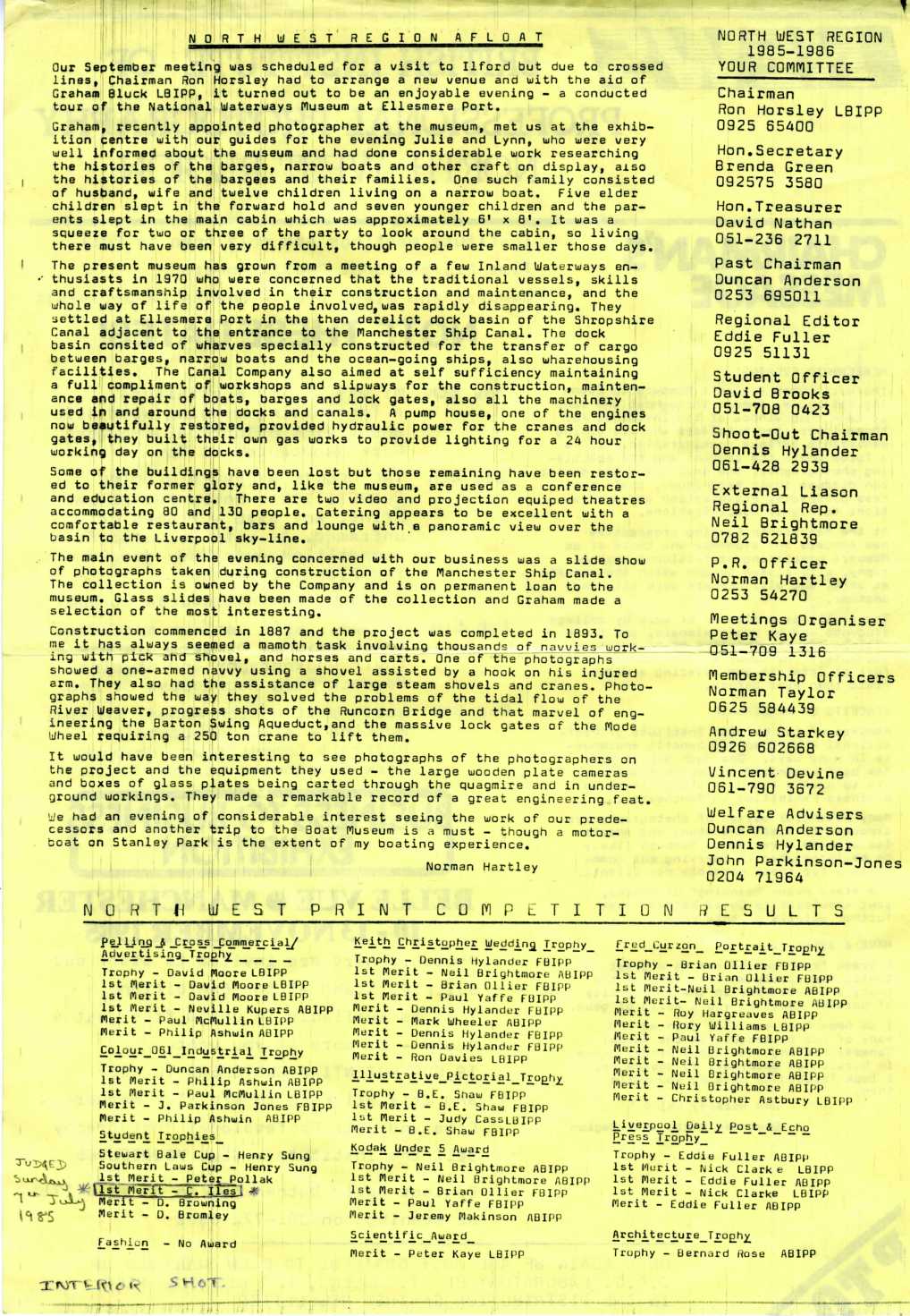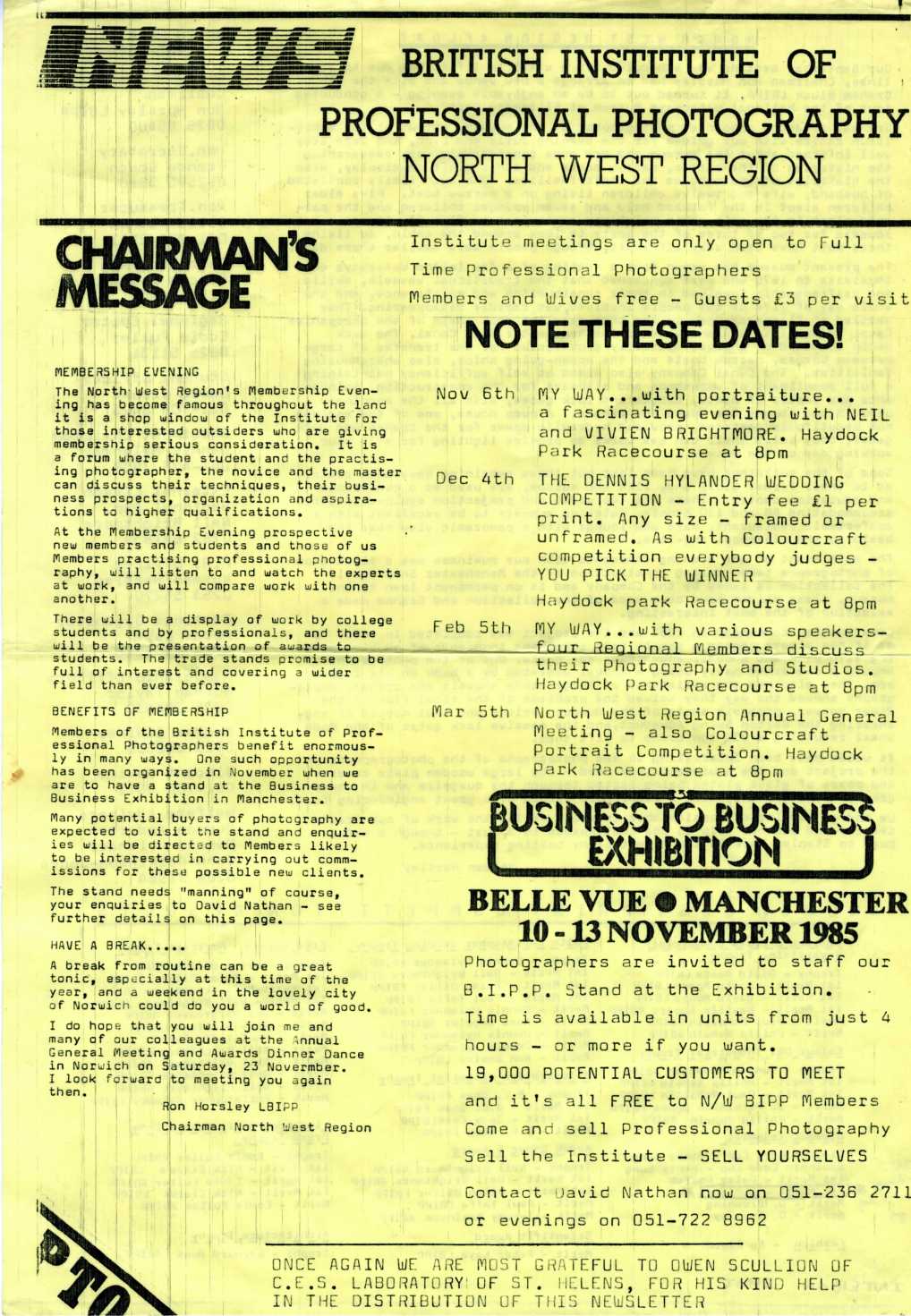 British Institute of Professional Photography, Newsletter for the North West awards event – 10th-13th November 1985.
