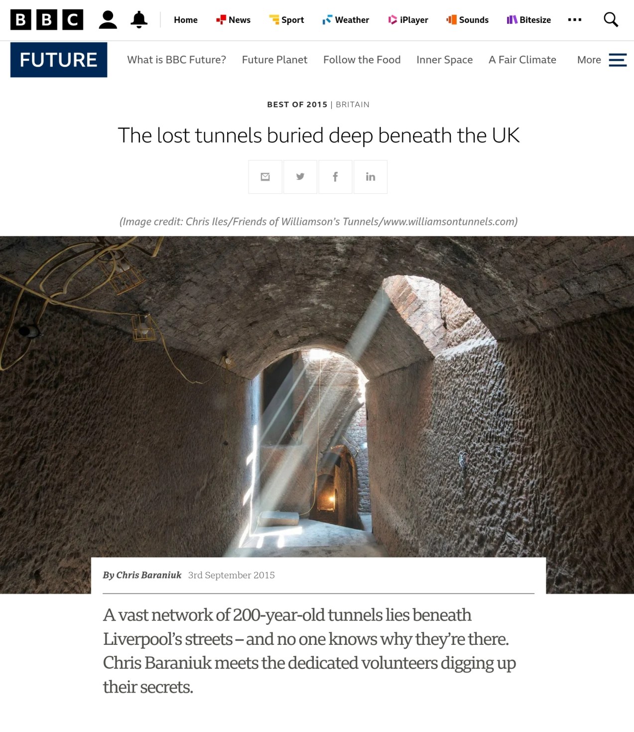 - BBC Future: “The lost tunnels buried deep beneath the UK” – Listed as one of BBC Future’s “Best of 2015” greatest hits of the year